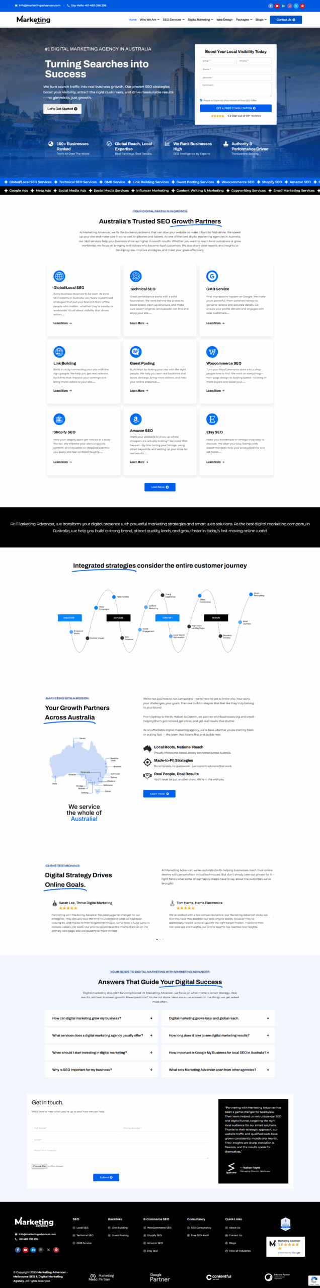 At Marketing Advancer, we don’t just create websites — we design digital experiences that leave a lasting impression. As a top website design agency Australia, we focus on design trends, usability, and branding to ensure your site not only looks beautiful but performs exceptionally well.
